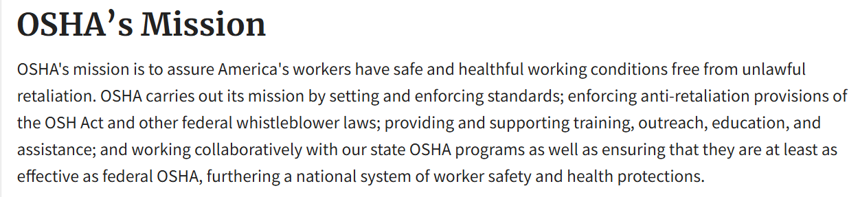 “OSHA’s Mission” (U.S. Department of Labor).