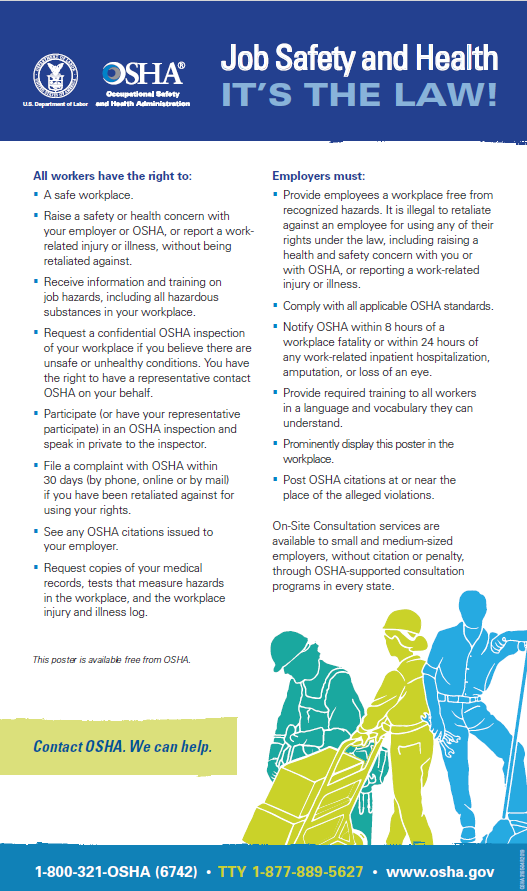 “Job Safety and Health - IT'S THE LAW” (U.S. Department of Labor).